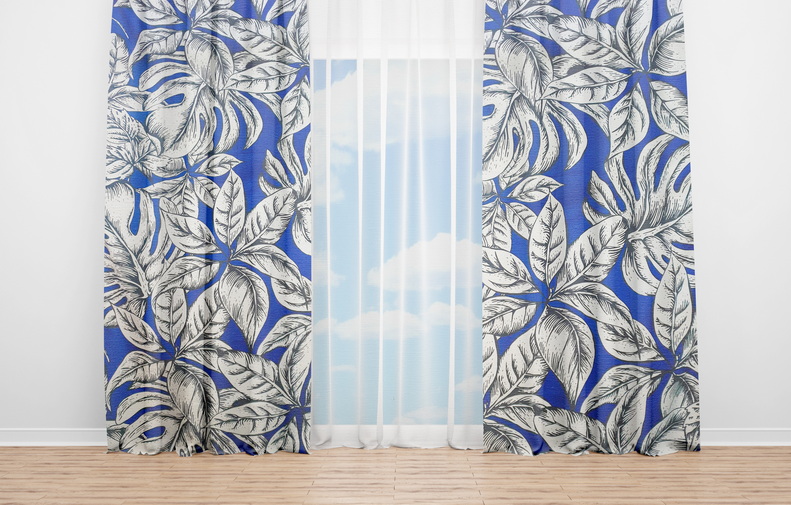 OYO Home SL FPR 59A New 240cm Leaves With Blue BackGround Curtains 280cm